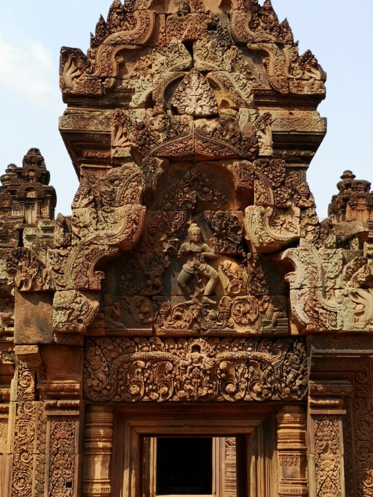 Etwas weiter außerhalb liegt der Banteay Srey Tempel. Hier ist es sehr belebt, viele Touristen stehen im Weg und lauschen den Erklärungen der Führer.