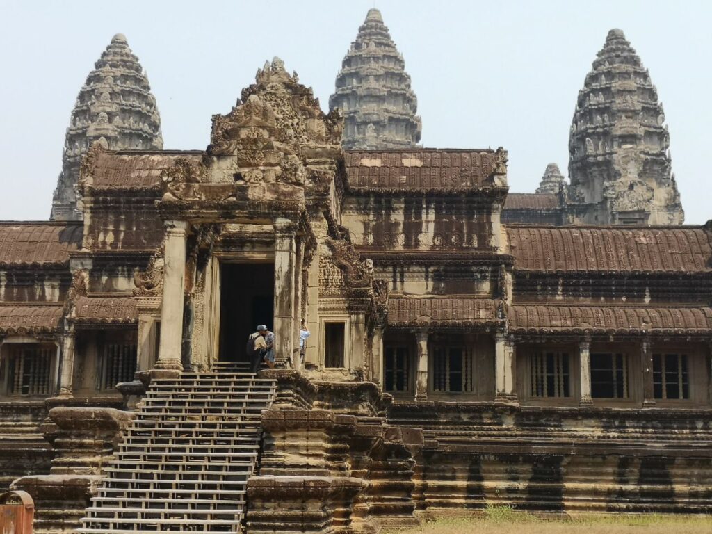 Das ist ja toll: Ich kaufe mir morgens vor 10 Uhr bei der einzigen (zentralen) Verkaufsstelle eine Eintrittskarte zum Besuch der Tempel für den Folgetag. Die kostet 37 US-Dollar. Und erfahre dabei, dass ich die Karte sofort einsetzen kann. Ich habe also für den Preis für eine Ein-Tages-Karte zwei Tage Zeit, die Tempel zu besuchen. Dann lege ich gleich mal los. Bis ich Angkor Wat erreicht habe und darin eingestiegen bin, ist es aber schon richtig heiß.