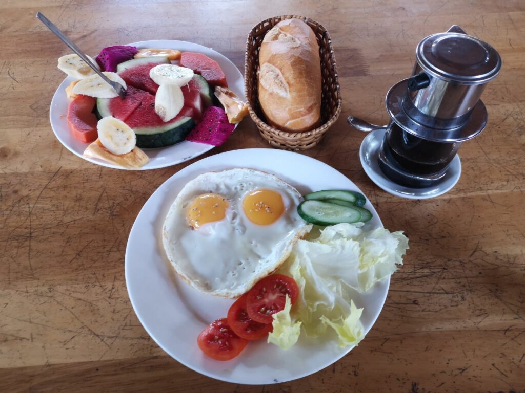 die Landessprachen vietnamesisch und kambodschanisch kann ich ja nicht sprechen. Entweder geht’s mit „Hand und Fuß“, mithilfe einer App wie Google Übersetzer (so ging es in Vietnam, dafür muss ich aber Netz haben) oder (geht nicht so oft) in Englisch. Manchmal holt mein Gegenüber jemanden hinzu, der Englisch kann. Gestern gab man mir schließlich den WiFi-Code, damit ich etwas zu Essen bestellen konnte.