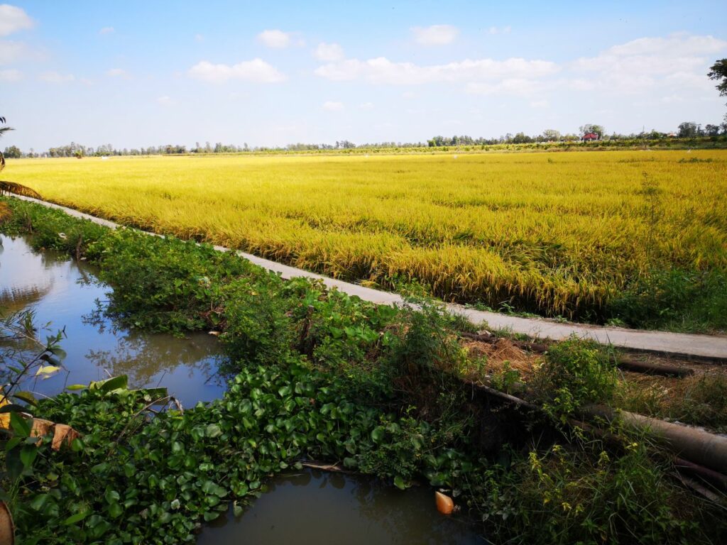 Ich war jetzt mehrere Tage im Mekongdelta. Ich habe mich in der Nähe von Ben Tre und von Cao Lanh umgeschaut und in der Landschaft dazwischen. Zum Schluss bin ich jetzt in Ha Tien, ganz im Südwesten Vietnams an der Grenze zu Kambodscha, am Golf von Thailand. Das Mekongdelta ist – was die Wasserführung angeht – wie Holland, nur viel wärmer. Das Wasser vom Mekong wird in Kanäle geleitet bis hin zum schmalsten Kanal in einem kleinen Feld. Und dort auch zwischen die Reihen, zum Beispiel bei den Palmen.
